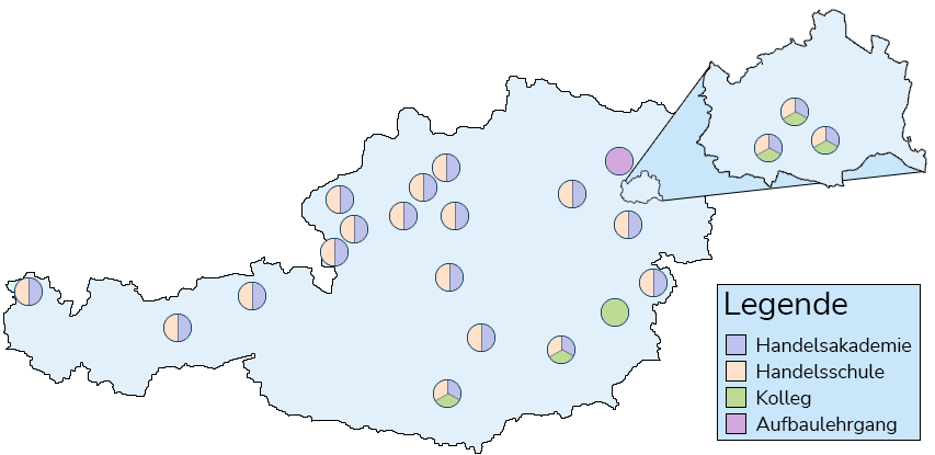 Österreichweit gibt es mehr als 20 Schulstandorte, an denen Sie Ihre Ausbildung beginnen können. Eine kaufmännische Abendschule ist sicherlich auch in Ihrer Nähe.